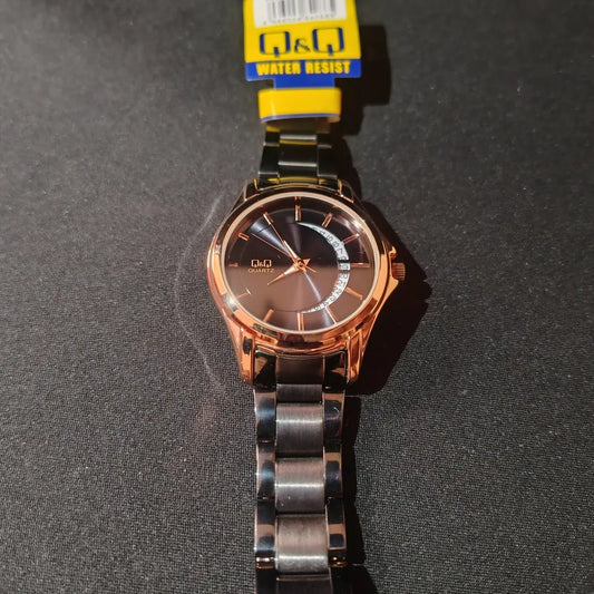 Reloj QyQ Caballero oro rosa y negro en Acero inoxidable con calendario de día y fecha